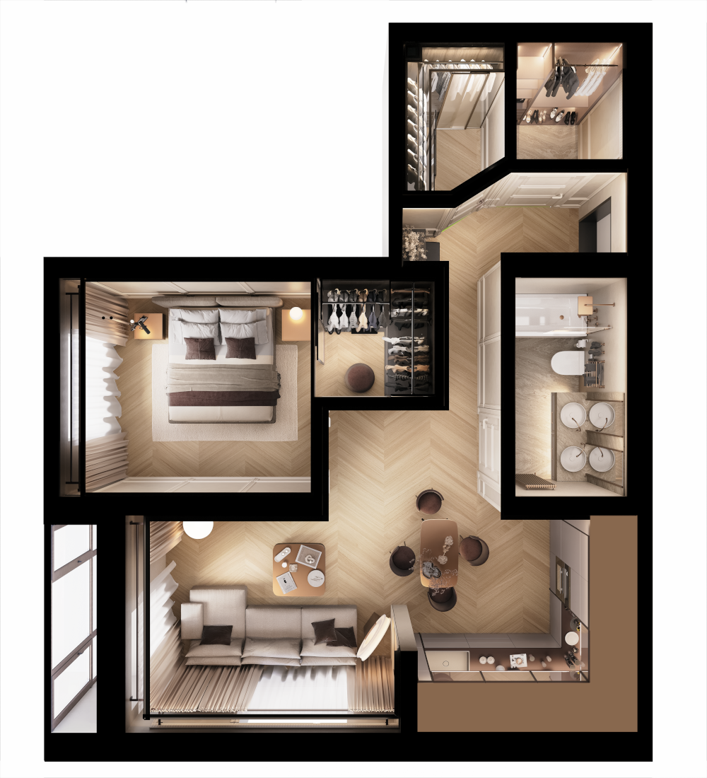 3Д-планировка помогает представить покупателю, как будет выглядеть квартира. Он может почувствовать объёмы комнат, понять, где и как лучше расставить мебель, какие сценарии жизни он сможет здесь проживать.